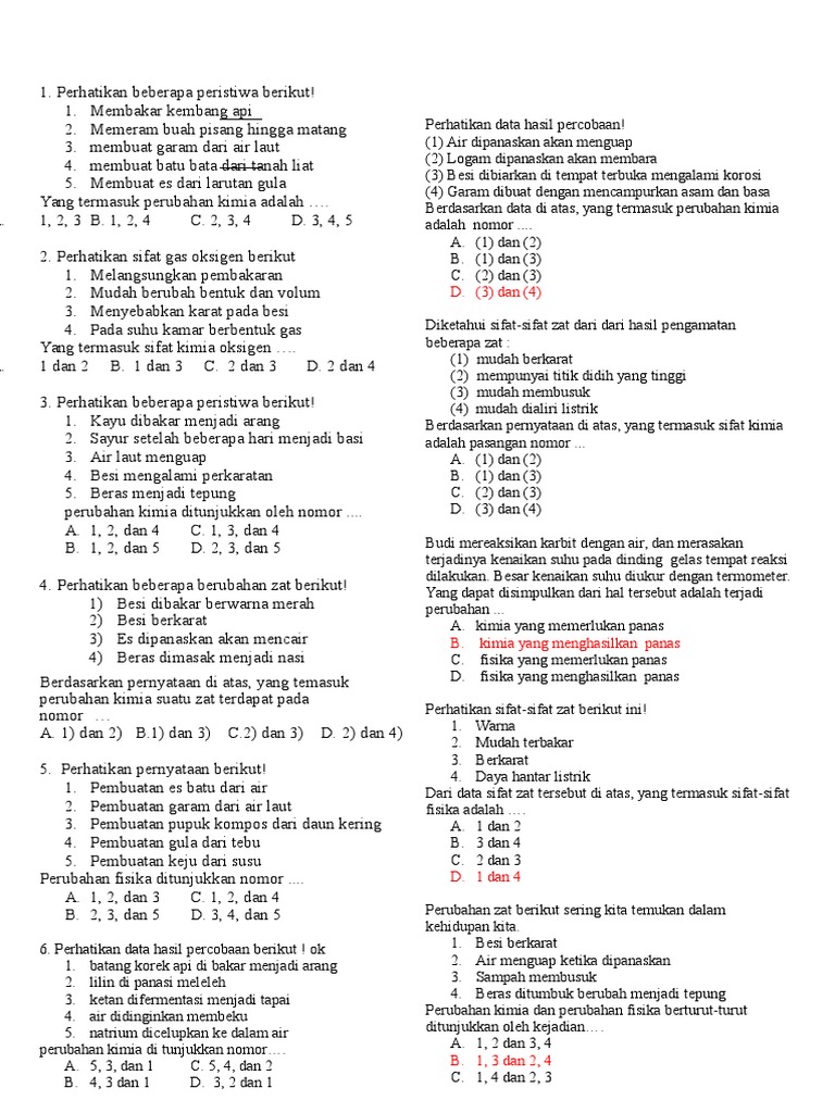 Peristiwa berikut yang termasuk perubahan kimia adalah. Dengan dasar tersebut Pak Mono membuat soal perubahan fisika dan kimia kelas 7 kurikulum 2013 edisi revisi 2017. Kompetensi dasar yang harus dicapai pada materi tersebut siswa dapat menjelaskan konsep perubahan fisika dan perubahan kimia dalam kehidupan sehari-hari.